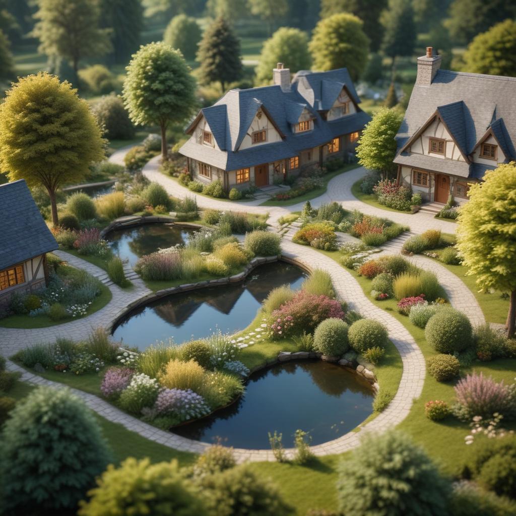 - Водные элементы: пруды и ручьи, интегрированные в систему управления стоком.